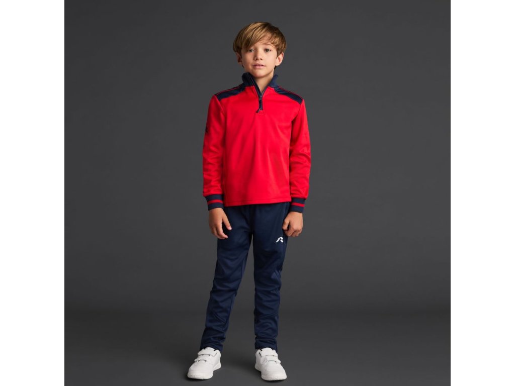 Dětská funkční mikina s vysokým límcem, vyrobená z recyklovaného pique polyesteru s měkkou broušenou podšívkou.