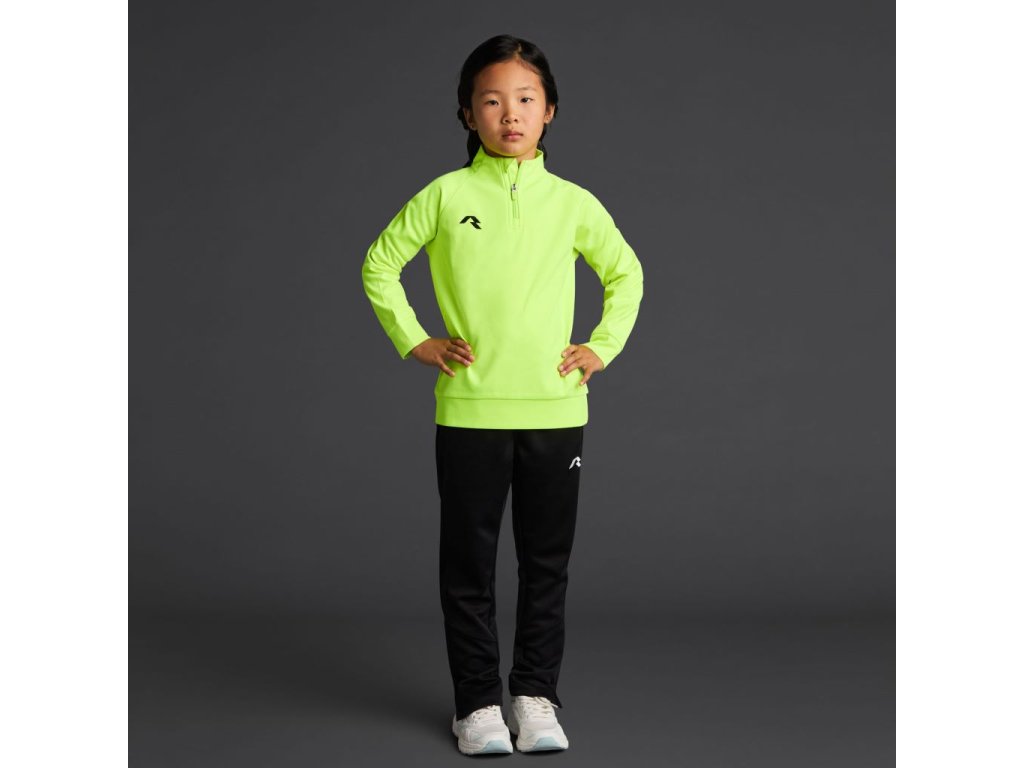 Dětská funkční mikina s polovičním zipem, raglánovými rukávy a středně vysokým límcem, vyrobená z recyklovaného pique polyesteru s měkkou broušenou podšívkou.