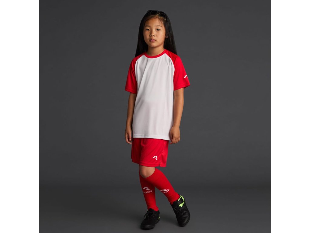 Raglánové dětské funkční tričko s krátkým rukávem z recyklovaného polyesteru. Dvoubarevný design.