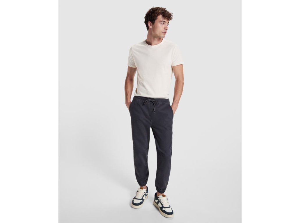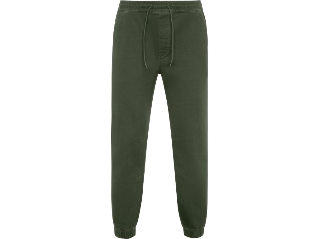 Kalhoty s elastickým pasem a manžetami. Kulatá stahovací šňůrka na vnitřní straně pasu. Boční kapsy a jedna zadní kapsa s lemováním. Ozdobné záševky v úrovni kolen.Doplňkové parametry