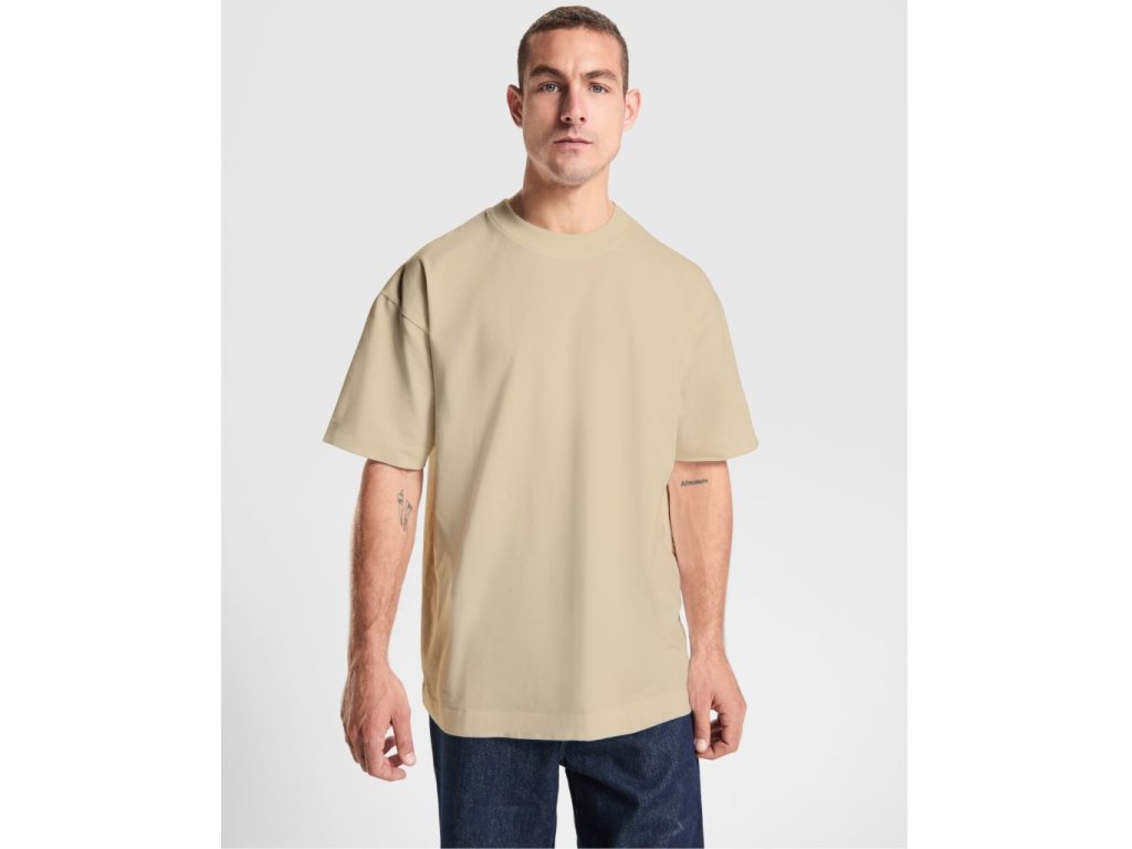 Tričko s krátkým rukávem v nadměrné velikosti. Široký kulatý výstřih s žebrováním 2x1. Podlepený výstřih ze stejného materiálu. Široké dvojité prošití na lemu a rukávech.Doplňkové parametry