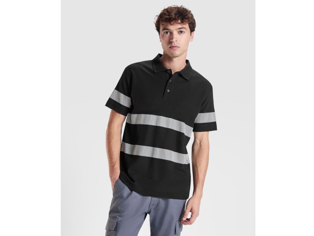 Pique polokošile s krátkým rukávem s úpravou proti žmolkování se zvýšenou viditelností. Dva segmentové reflexní pruhy na hrudi a zádech a jeden na každém rukávu. Zapínání na 3 knoflíky stejné barvy. Límec a manžety s žebrováním 1x1. Podlepený výstřih. Kapsa, volitelná. Vnější štítek Roly WRK.Doplňkové parametry