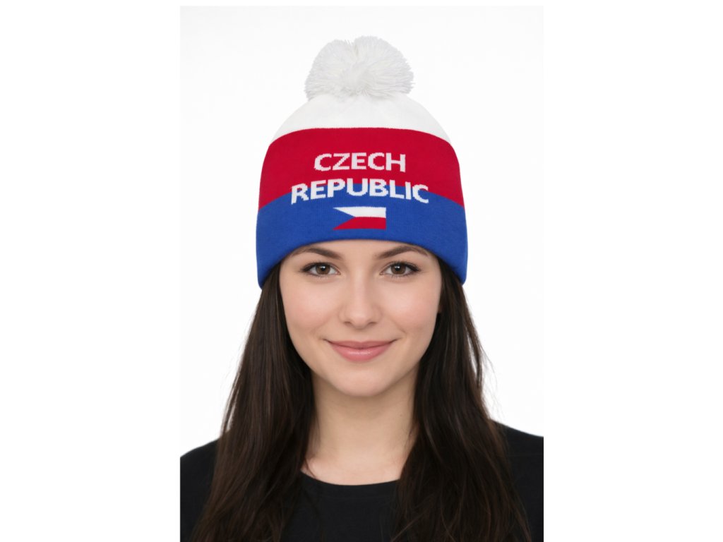 Stylová pletená zimní čepice v barvách České republiky, ideální do chladného počasí. Kombinace červené, modré a bílé spolu s výrazným nápisem Czech Republic a motivem české vlajky dává čepici sportovní a reprezentativní vzhled. Měkký a hřejivý materiál zajišťuje pohodlí při každodenním nošení, na sport i volnočasové aktivity. Klasický střih s bambulí se snadno kombinuje a sluší ženám i mužům.